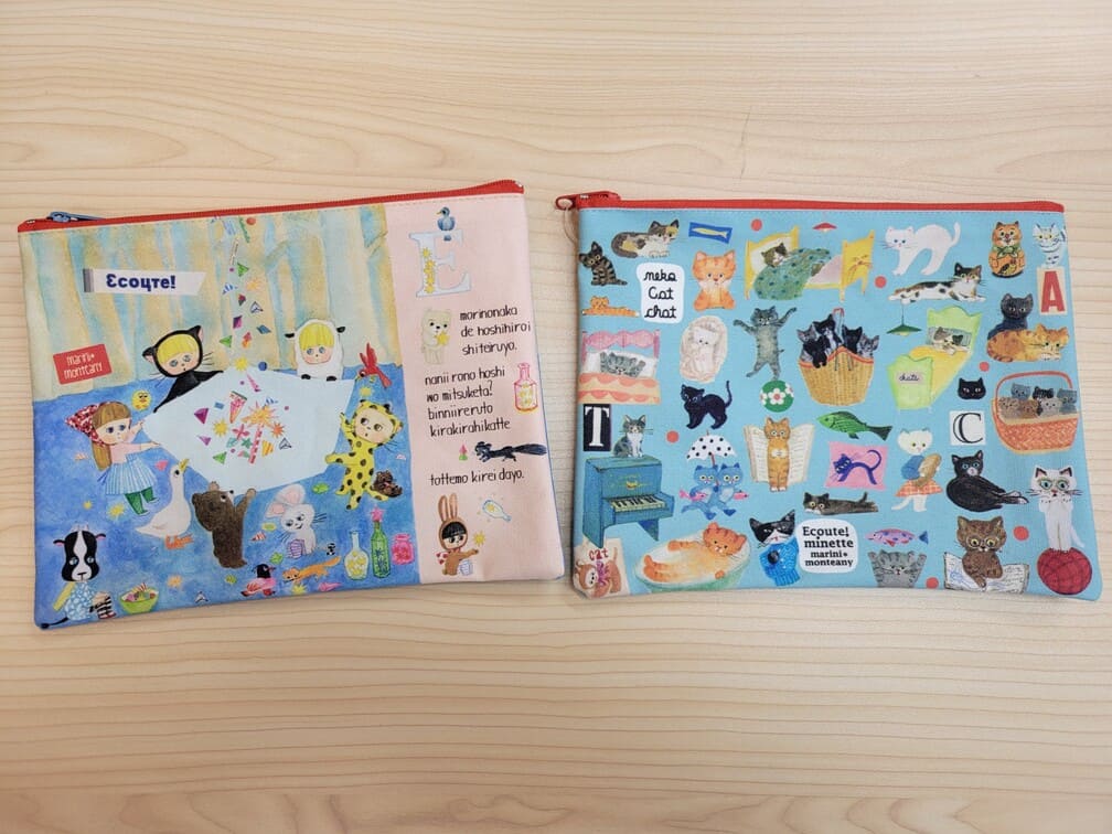 身に着けるものはシンプルでも、小物は可愛く!という願望やカラフルで繊細な絵柄がきちんと表現されたポーチ。